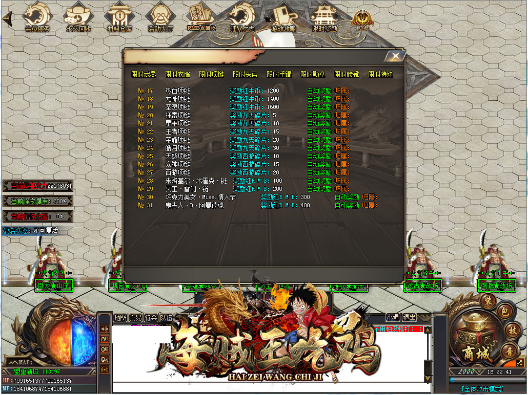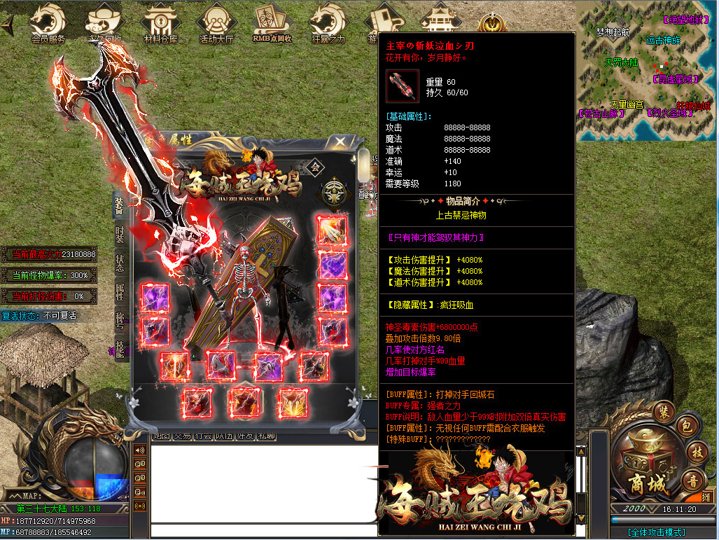 游戏介绍:突破42亿血量!无限货币!增加全新大陆!全新玩法!天命BUFF系统!PK不再单调!