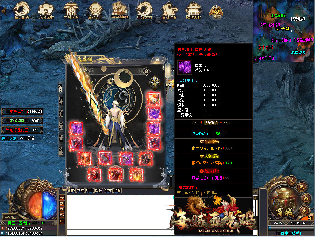 游戏介绍:后期地图增加20倍怪物!全屏切割(无限爽爆率)!白嫖顶赞!1000%通关率!必刷20只福利怪-必爆充值点!