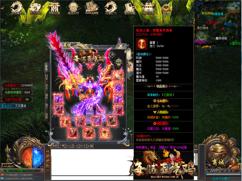 游戏介绍:礼包全部重新改!降低装备元素属性,优化PK,取消所有破复活BUFF,还原最初的pk,优化pk属性